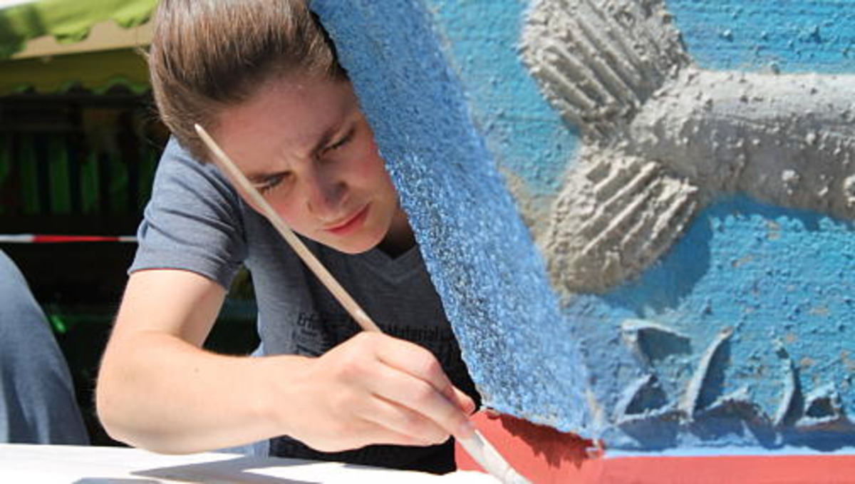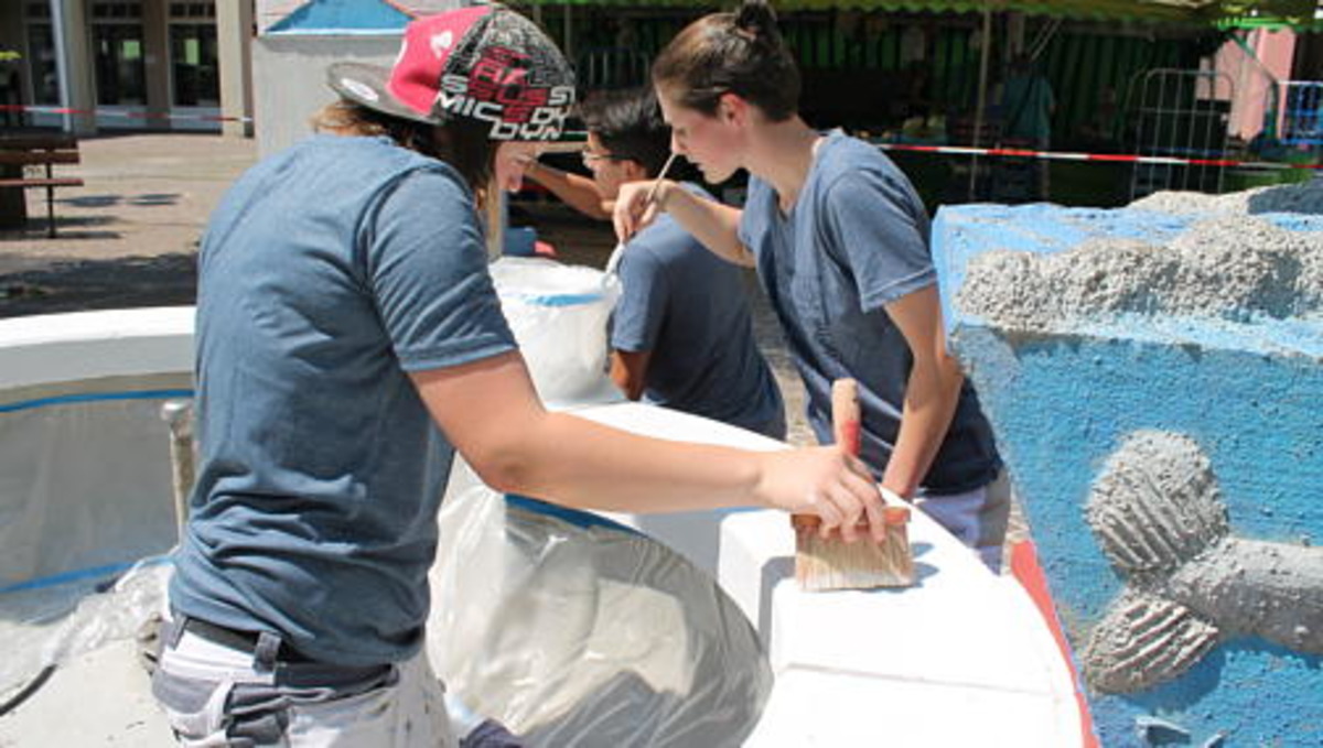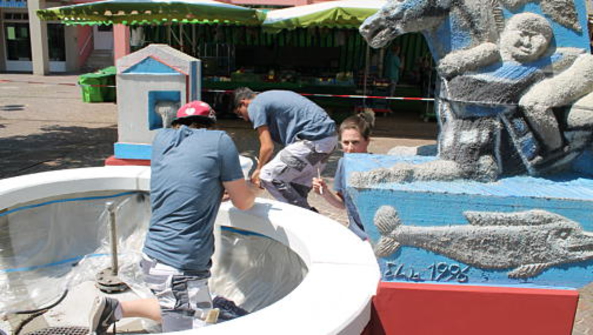 InnungsMaler Azubis sorgen für das gewohnte Farbspiel am Kauz-Brunnen